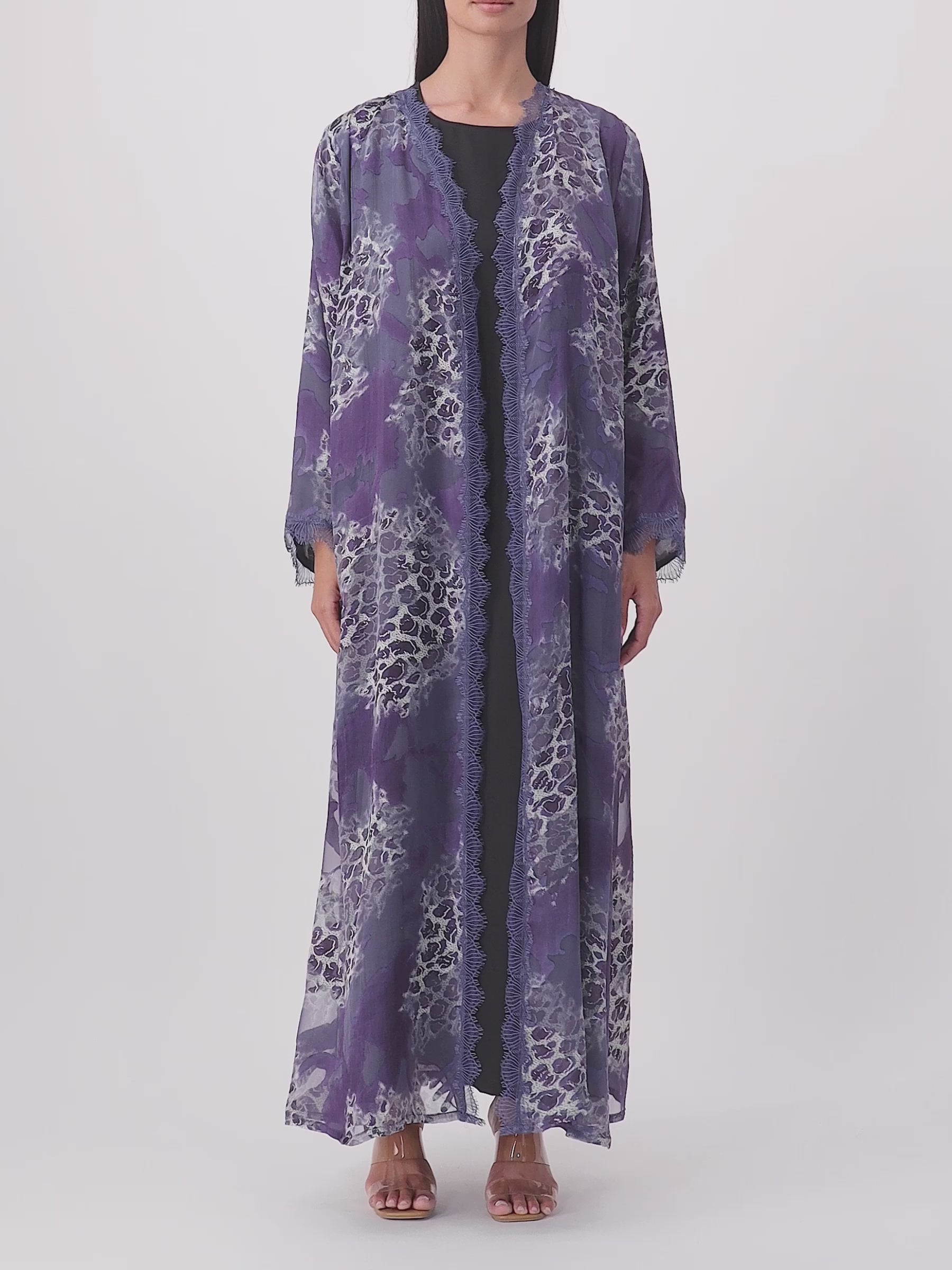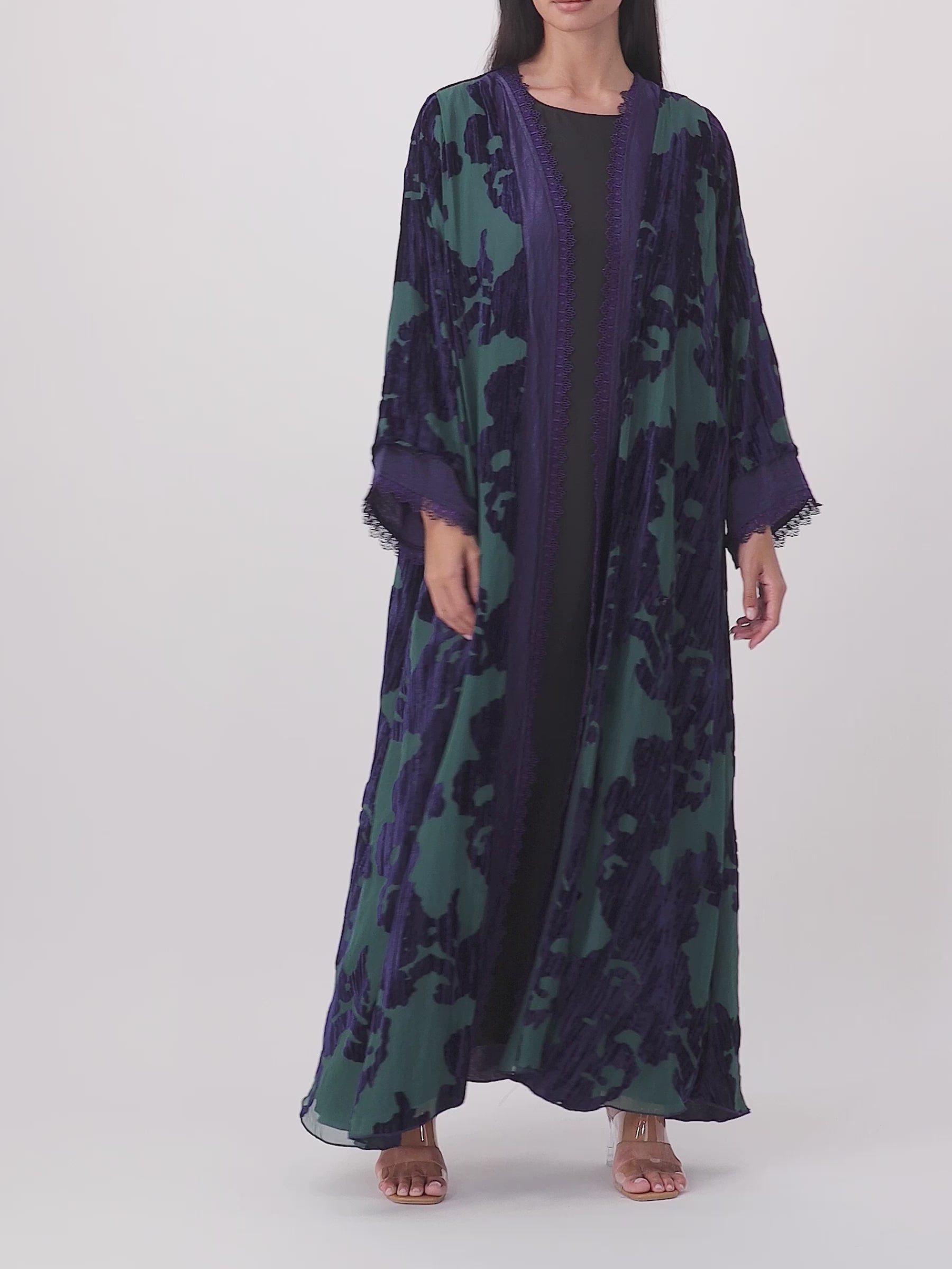 فلوريت - عباية دانتيل باللون الأزرق الداكن