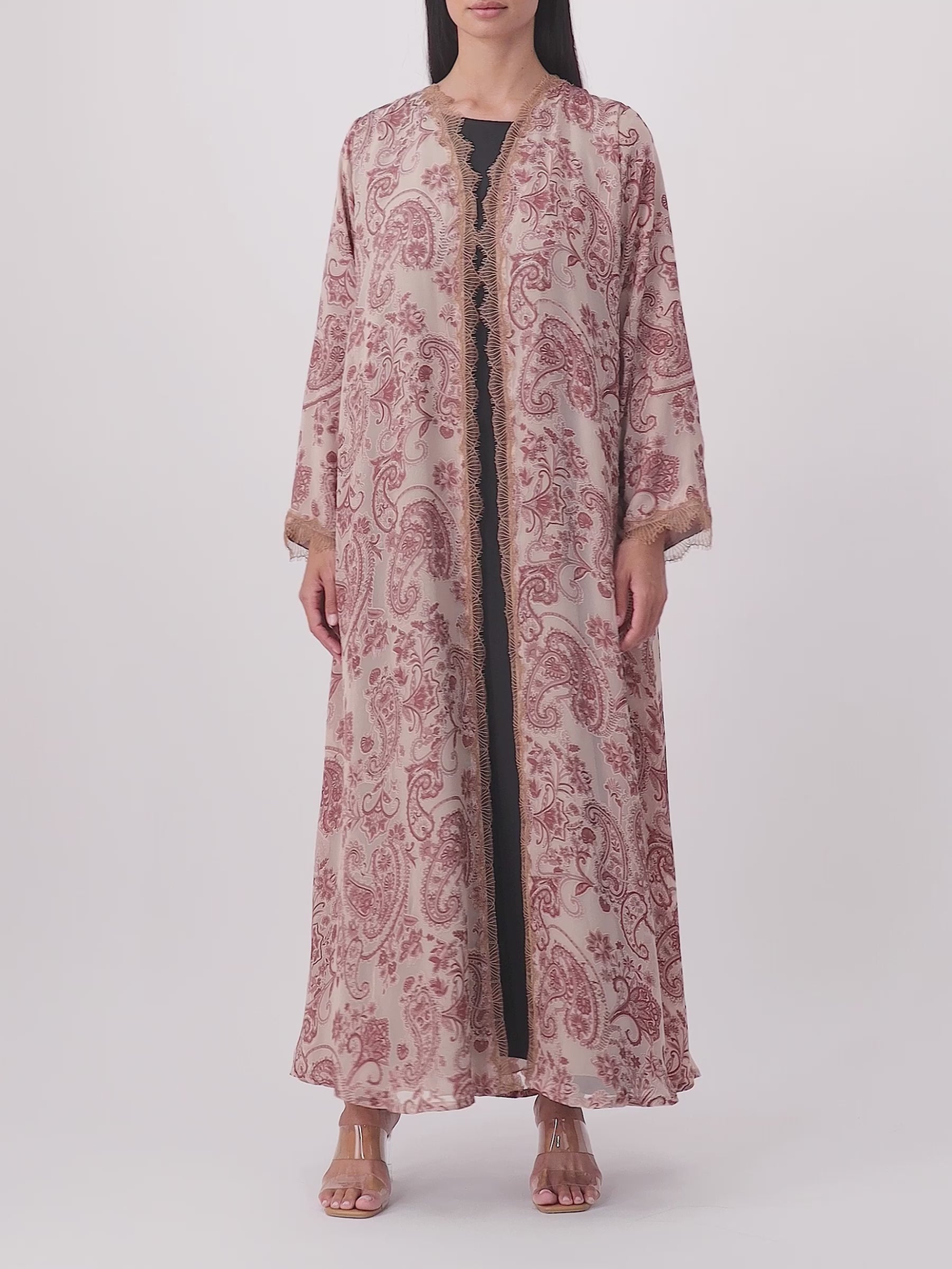 بتلات دمشقية - عباية كستنائية مطبوعة