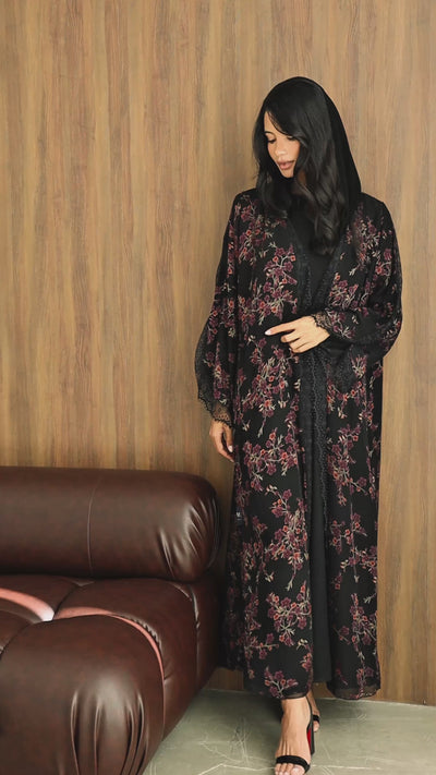An elegant fusion of soft abstract fabric and delicate lace finishes.