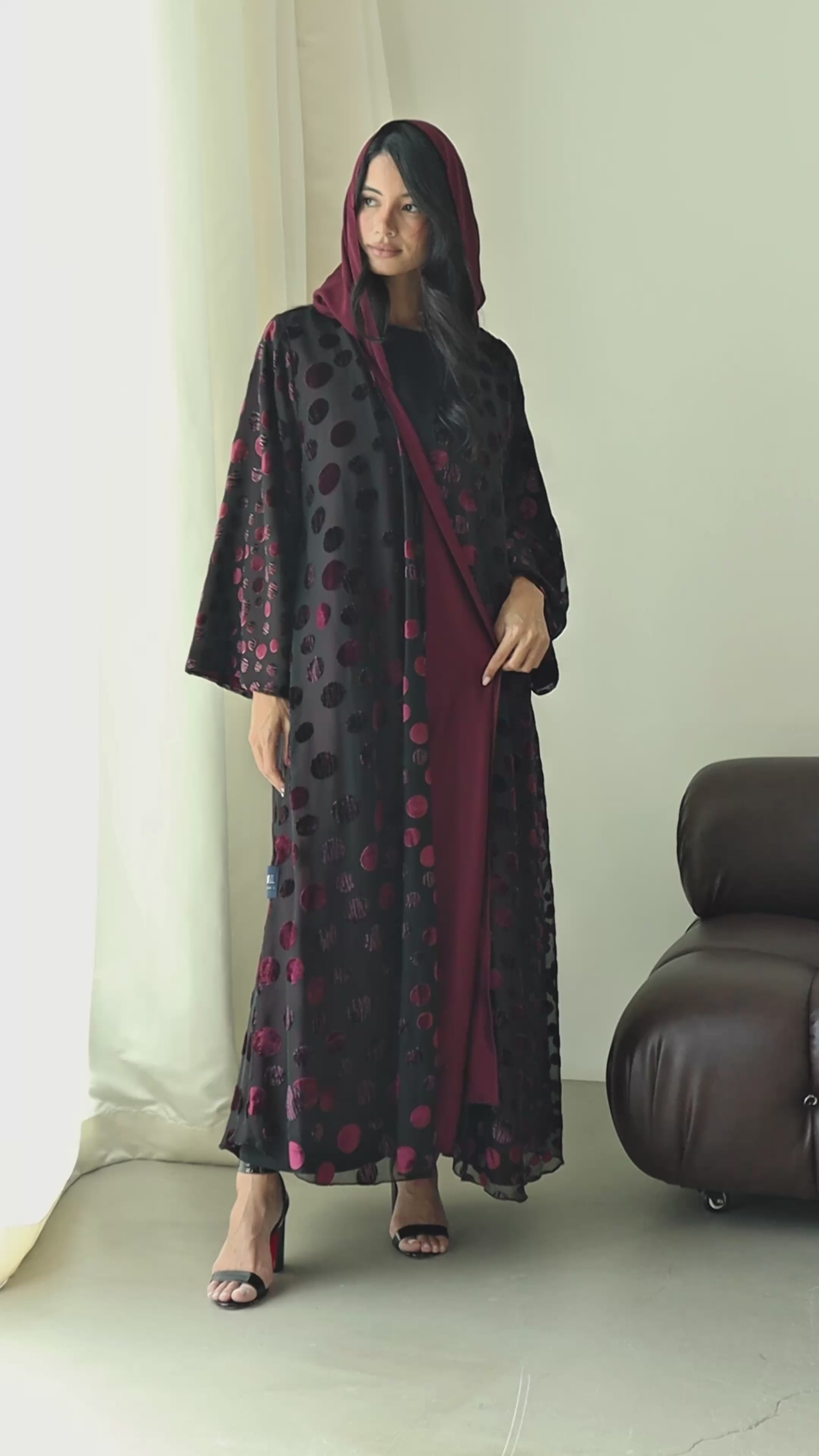 Polka Velvet Maroon Abaya السعر بعد الخصمAED 950.00