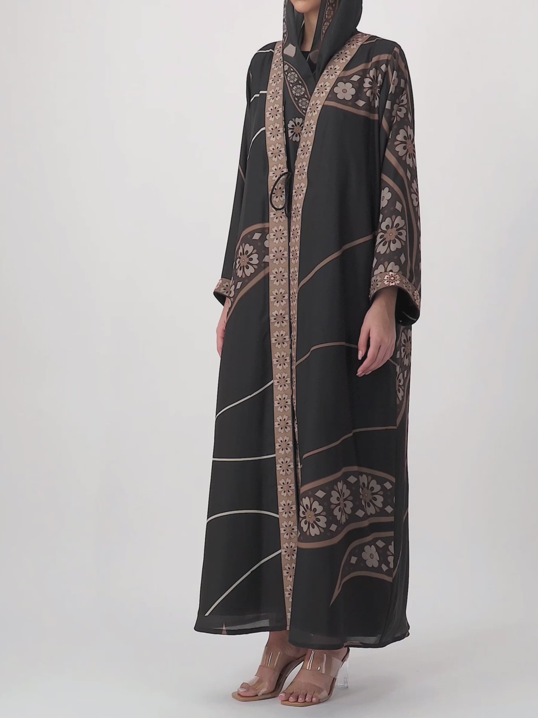Glory - Two Toned Floral Embroidery - (Brown Abaya)