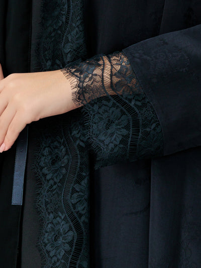 Floret - Dantel Navy Blue Abaya