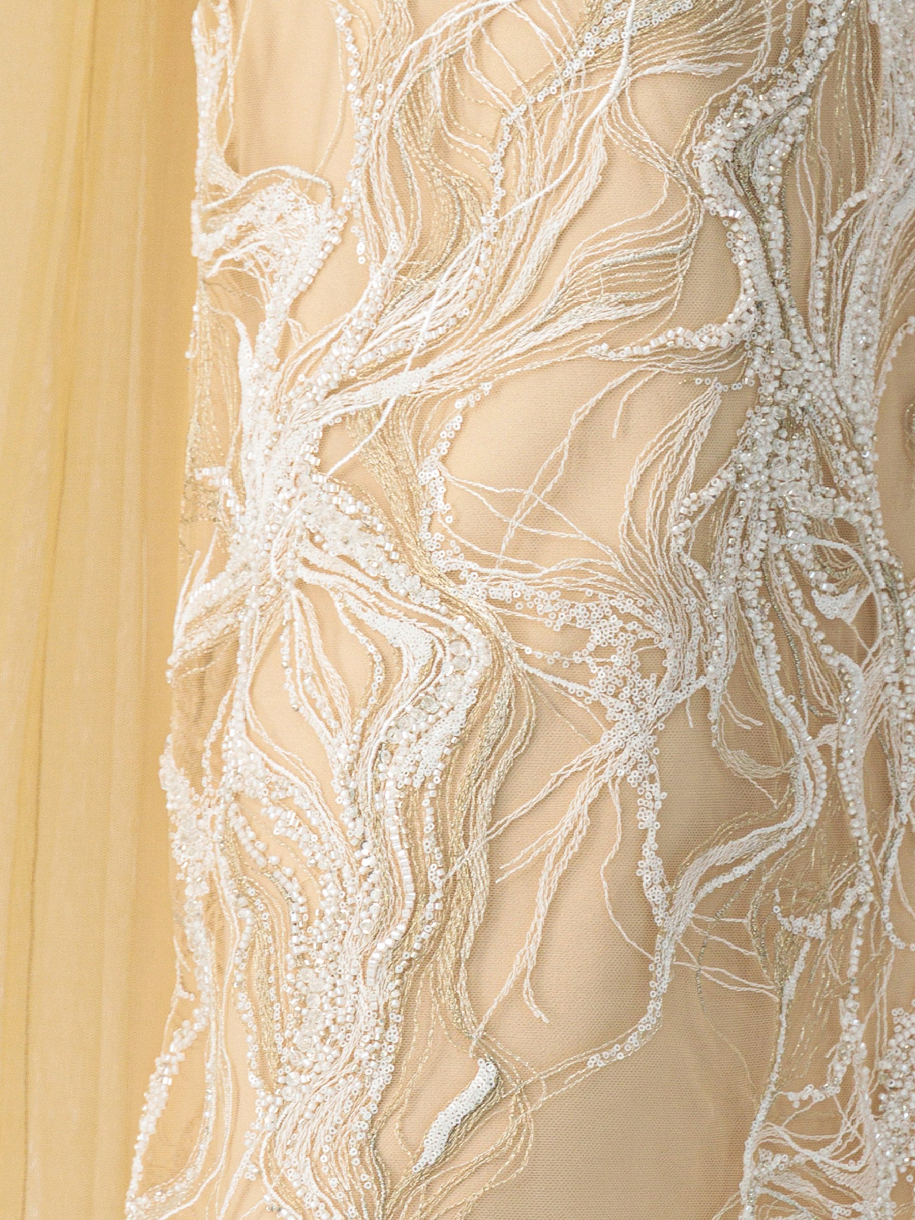 The Lamma dress is crafted from soft beige tulle and delicately embroidered with fine thread work for a refined finish. Its airy layers fall beautifully, creating an elegant silhouette that enhances comfort and grace. Ideal for daytime gatherings or festive celebrations, this versatile dress embodies subtle sophistication. Lightweight yet stylish, it’s the perfect choice for those who prefer understated elegance with timeless appeal.