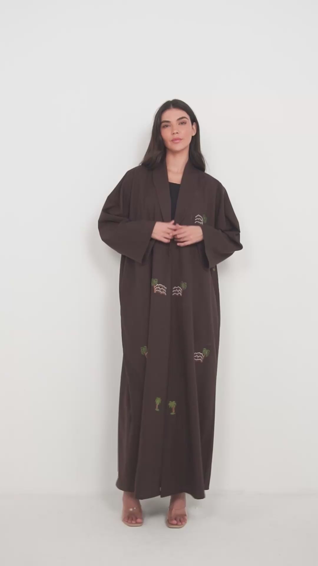 Elevation - Linen Palm Tree Embroidery - (Brown Abaya)