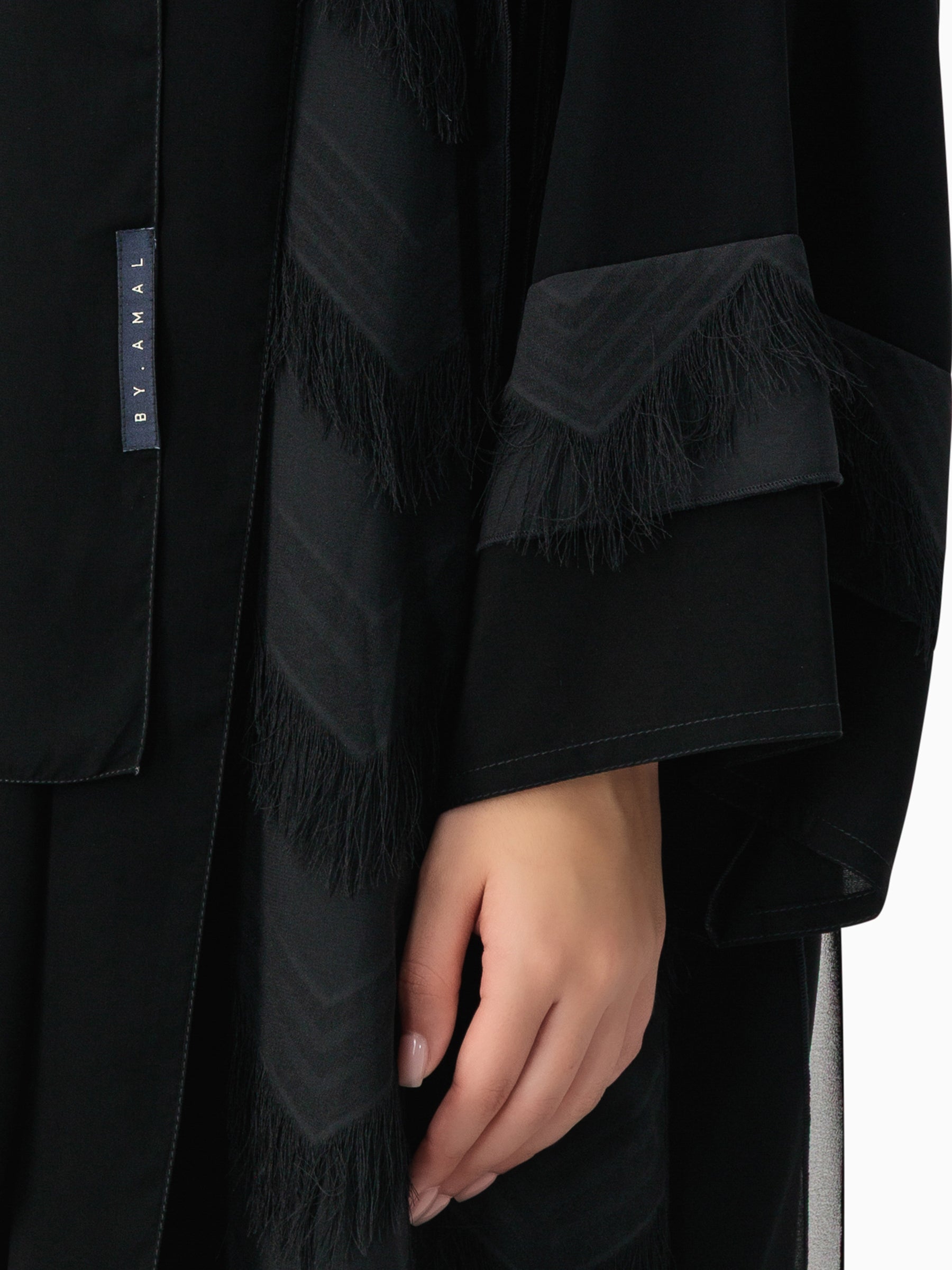 Discover elegance in layers with the Black Abaya. This luxury abaya features layered panels that add volume and sophistication to the silhouette, creating a flowing, graceful look. Perfect for modest fashion lovers, it strikes the right balance between minimalism and detail. Whether styled with heels for a formal occasion or kept simple for daily wear, this abaya is a wardrobe essential.